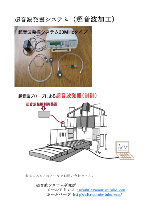 超音波システム研究所は、 オリジナル製品:超音波システム(音圧測定解析、発振制御)による 以下の対応を行っています 1)超音波システム(音圧測定解析、発振制御)の製造販売 2)各種機器(注)へのコンサルティング対応 注:洗浄機、攪拌装置、加...