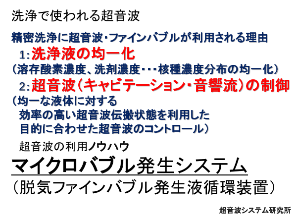 超音波とファインバブル(マイクロバブル)による洗浄技術