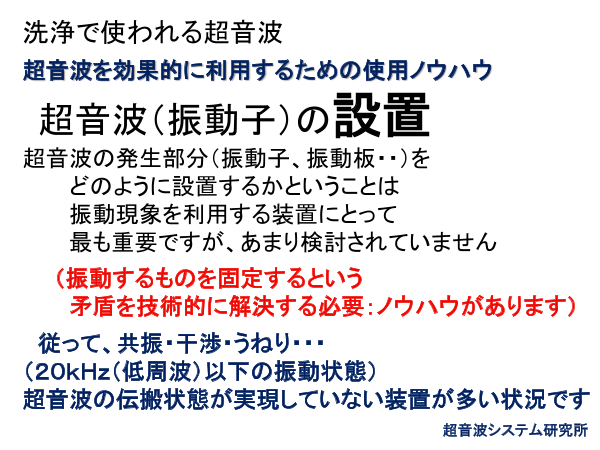 超音波システム研究所は、 超音波振動子の設置方法による、定在波の制御技術を発展させ、 キャビテーションと加速度(音響流)の効果を最適化するする 超音波振動子の設置技術を開発しました 上記の技術により、大きなエネルギーを必要とする ...