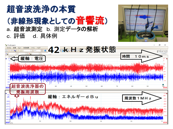 超音波洗浄の本質(非線形現象としての音響流) 超音波システム研究所は、 超音波伝搬状態の測定データを バイスペクトル解析することで、 キャビテーションと加速度の効果に関する分類方法を開発しました。 この分類方法は、 超音波の伝...