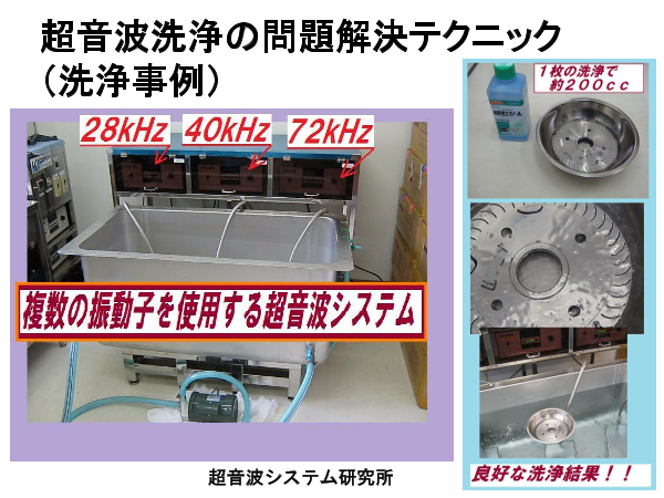 洗浄の問題解決テクニック(洗浄事例) * 洗浄システムの具体例 * 洗浄効果実績のある、推奨超音波洗浄装置の具体例 * 洗浄・攪拌システム * 洗浄・攪拌システムの具体例 * 洗浄事例