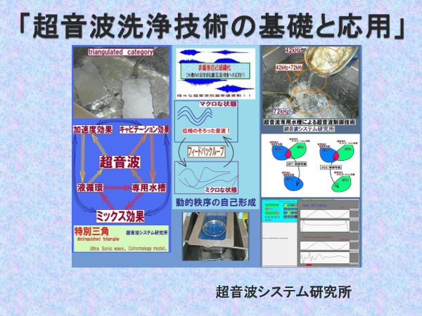 新しい超音波洗浄 2010・05.22 ―― テキスト&ヒント集 ―― この資料は以下の内容です 1)超音波洗浄において「超音波」を有効に利用するための説明資料 2)「洗浄システム」を検討・提案するための超音波洗浄についての説明資料 3)「洗浄装...