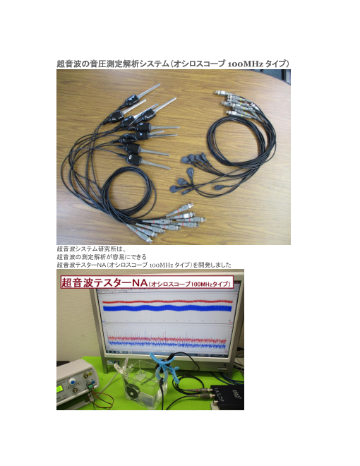 超音波システム研究所(所在地:東京都八王子市)は、 超音波の測定解析が容易にできる 超音波テスターNA(オシロスコープ100MHzタイプ)を開発しました システム概要(超音波テスターNA100MHzタイプ) 1.価格 264,000円(税...