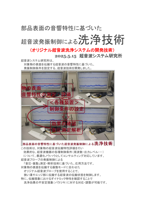 オリジナル超音波洗浄システムの開発技術