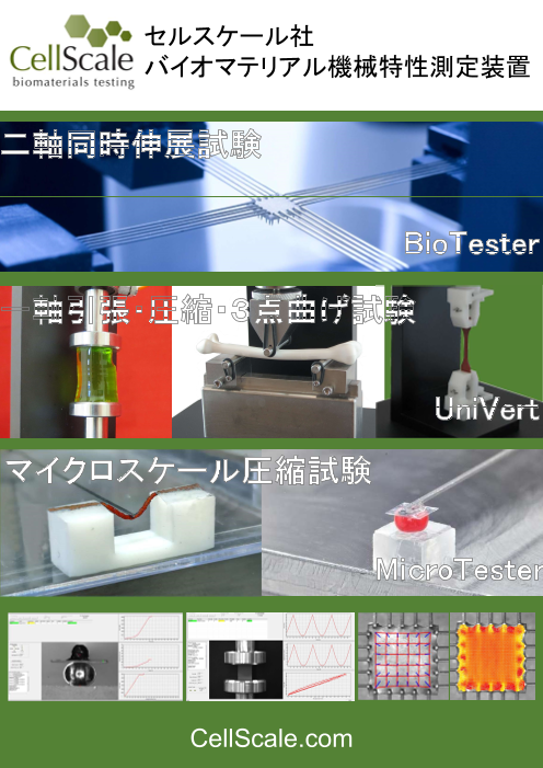 【掲載製品】 ◆バイオテスター/ BioTester 2軸伸展強度測定装置 ◆ユニバート/ UniVert 1軸 張力・圧縮・3点曲げ強度測定装置 ◆マイクロテスター/MicroTester マイクロスケール強度測定装置