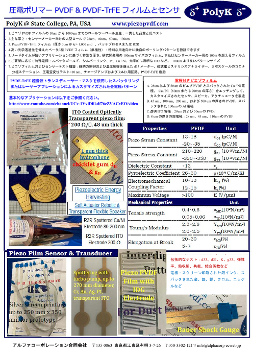 PolyK ピエゾPVDFフィルムは、圧電定数d31が高く、ロールツロールで、スパッ...