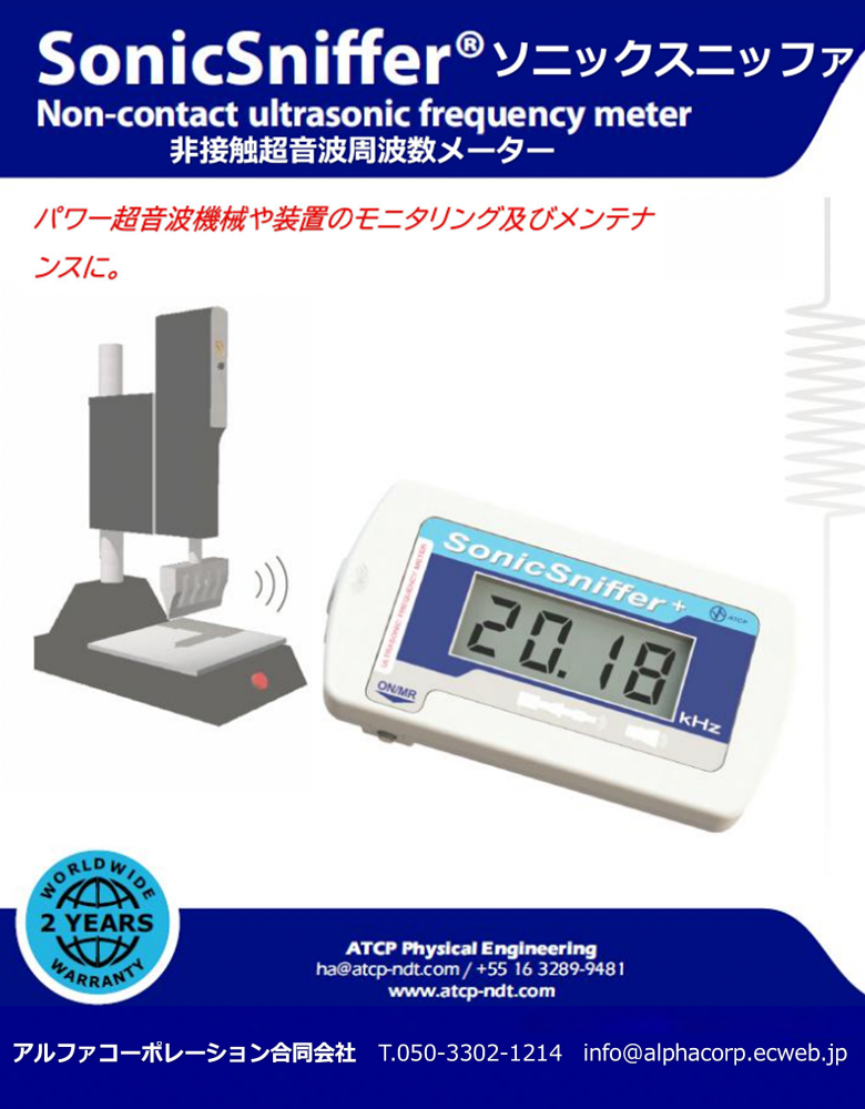 掲載製品 ◆TRZ(R)アナライザ 超音波トランス・ホーンアナライザ ◆ソニックスニッファー 非接触超音波周波数メータ ◆ピエゾクランピング ◆ソネラスティック ◆詳細はカタログをダウンロードしご覧いただくか、お気軽にお問い合わせ下さい。