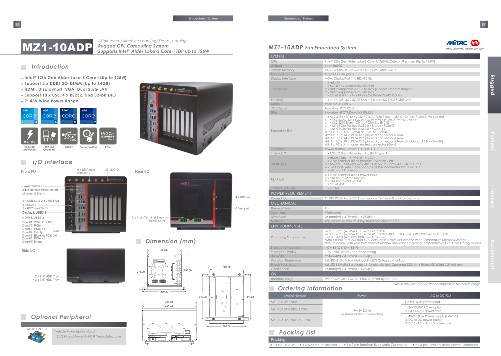 【MZ1-10ADP】は、Intel® Alder Lake-S / Core-i i/Xeon TDP を搭載した堅牢な GPU コンピューティング組み込みシステムです。 ≪特徴≫ ・Intel® 第 12 世代 Alder Lake-S Xeon...