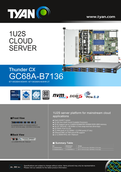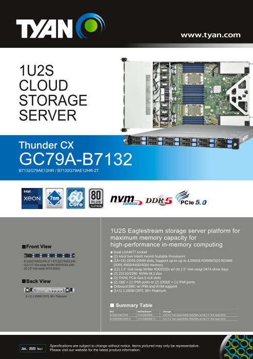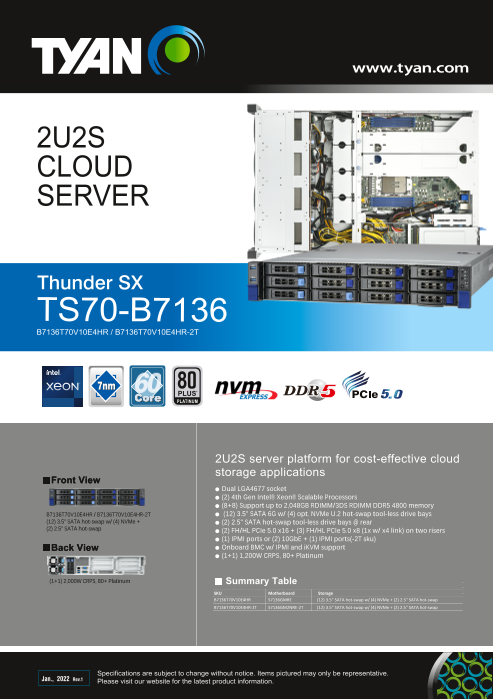 Thunder SX【TS70A-B7136】は、18 SFF (8 NVMe U.2) + 2 SFF、2U2S ハイブリッド ウォーム ストレージ サーバーです。(B7136T70AV12E8HR / B7136T70AV12E8HR-2T) ...