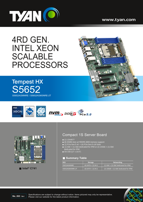 Tempest HX【S5652】は、Mainstream Compact 1S サーバー マザーボードです。(S5652AGM3NRE-2T / S5652AGMNRE) ≪特徴≫ シングル インテル ソケット E Support 4th ...