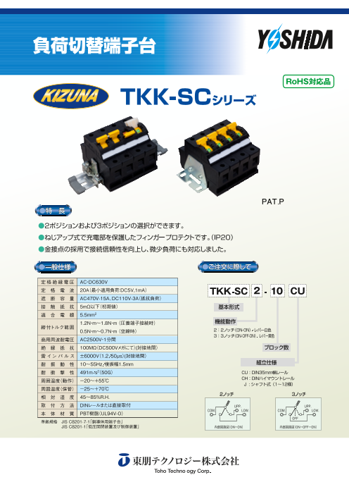 【特長】 ■RoHS対応品 ■金接点の採用で接続信頼性を向上し、微少負荷にも対応! ■2ポジションおよび3ポジションの選択可能 ■ねじアップ式で充電部を保護したフィンガープロテクト(IP20安全規格) ※詳しくはPDF技術資料をご覧いただく...