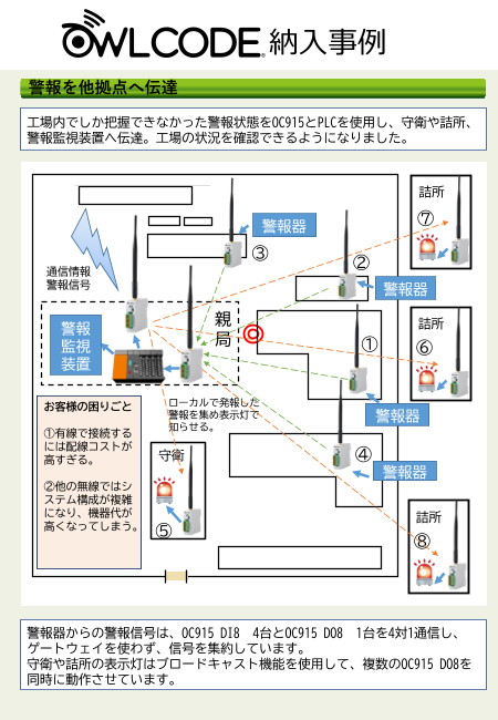 状態監視や監視制御に好適な無線機”OWLCODE”を使用し、 警報を他拠点への伝達を...