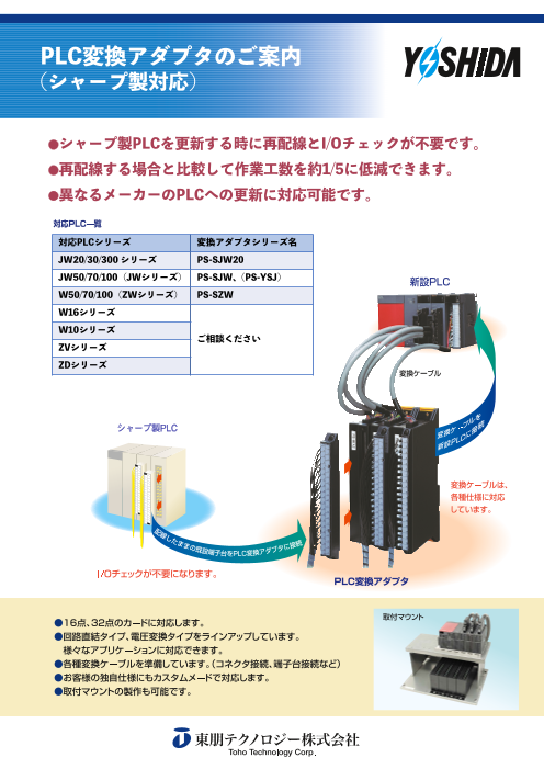 既設のシャープ製PLCの配線をそのまま使うことができるので、配線工数の大幅な削減が可能です。 更新する新設PLCは様々なメーカーに対応しています。 電圧変換対応の...