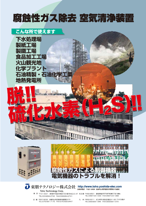 下水処理場、製紙工場、製鉄所、食品工場、化学プラント、地熱発電所など腐食性ガスの発生する場所に設置している 制御盤内の腐食性ガスを化学吸着方式にて除去する空気清浄装置です。 ・主な...