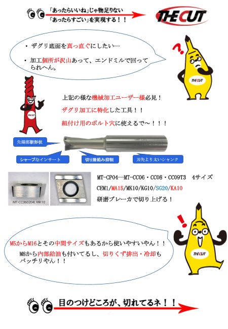 ザグリ底面を真っ直ぐにしたい!! この様な機械 加工ユーザー 様必見!! ザグリ加工に特化した工具です。 組付け用のボルト穴にも使えます。
