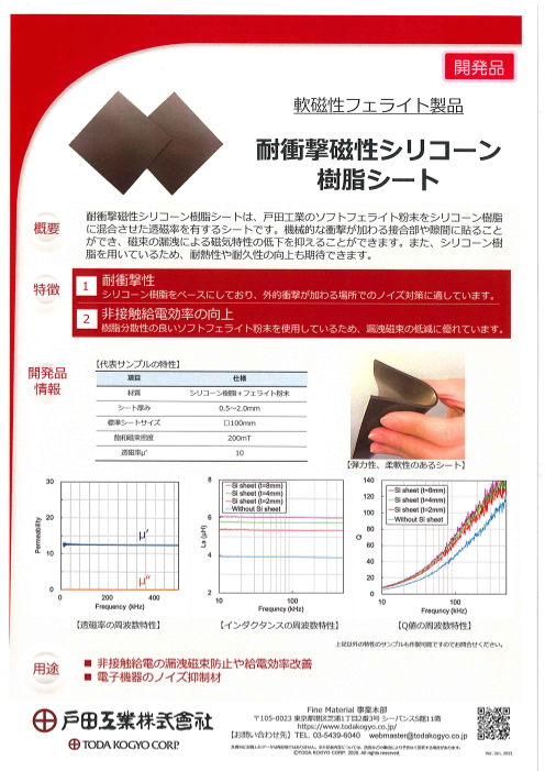 軟磁性 フェライト製品 衝突磁性シリコーン樹脂シート