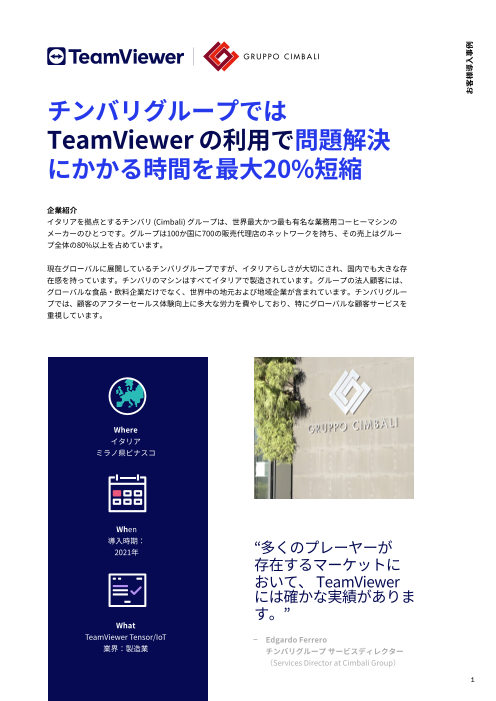 世界最大かつ最も有名な業務用コーヒーマシーンを提供するイタリアのチンバリグループ社の事例です。TeamViewerを活用すれば、無人の業務用機器もいつでもどこからでもサポート可能です。