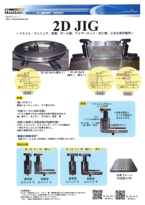 【2DJIG】フライス・マシニング、旋盤、ボール盤、ワイヤーカット・加工機、三次元測定機用 あらゆる機械での位置決め・クランピングが1セットで可能になります。四角・異形プレートに楽にセッティングでき、段取り時間の削減になります。 【微調トグルクランプ...