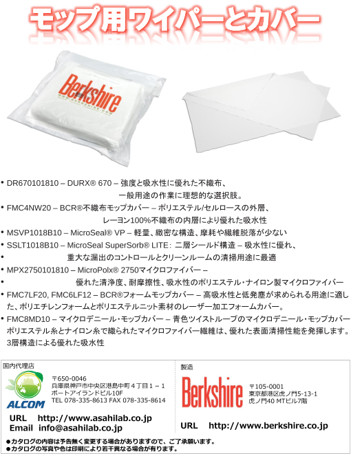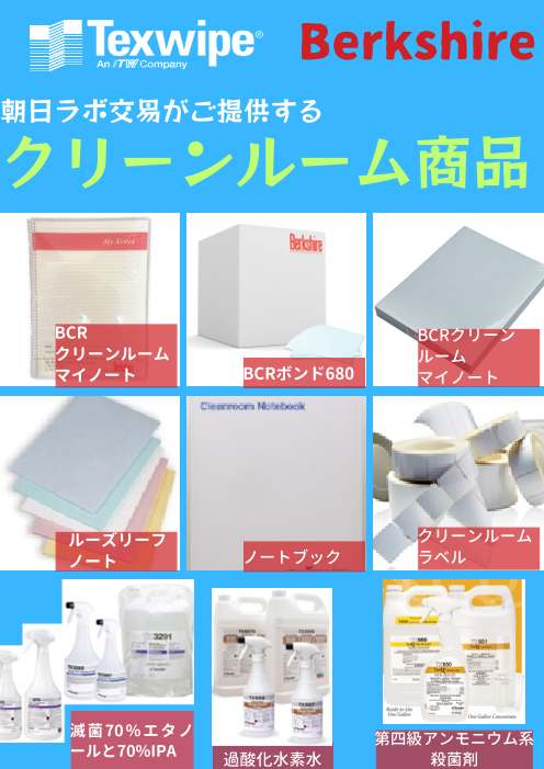 朝日ラボ交易がご提供する、クリーンルーム内消耗品のご紹介。お気軽に下記よりお問い合わせください。 info@asahilab.co.jp