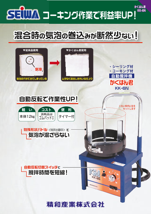 攪拌効率の良い自動反転方式を採用!現場でのシーリング混合に最適な1台