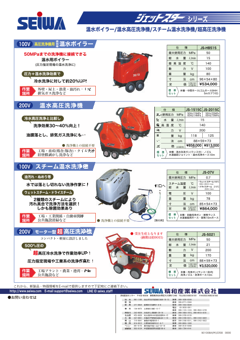 <特長> 高効率ボイラーだけを別置き! 現場移動も楽々! ◆100V電源でスイッチ一つの安定作業 ◆ガンを止めるとバーナー即停止!再度ガンを引けば即点火 ◆設定温度に達するとバーナー停止!水温が下がると自動的に再点火 ◆縦型ダブルヒー...