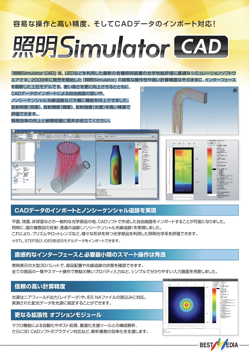 「照明Simulator CAD」は、LEDなどを利用した最新の各種照明装置の光学性能評価に最適なシミュレーションソフトウエアです。2009年に発売を開始した「照明Simulator」の容易な操作性や高い計算精度はそのままに、インターフェースを刷新した上...