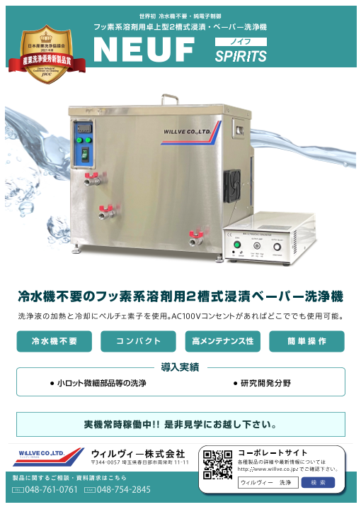 冷水機不要 フッ素系溶剤用卓上型2槽式浸漬・ベーパー洗浄機 ...