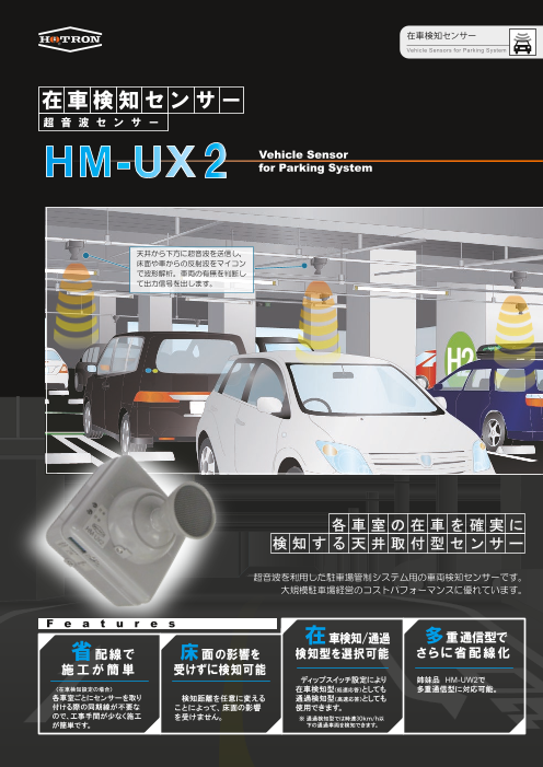 駐車場各車室の入出庫を確実に検知する天井取付型 車両検知超音波センサー 「HM-UX...