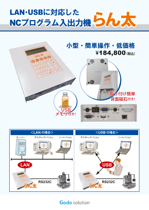 加工現場を離れずにタブレットひとつでNCプログラムの送受信から編集までできます。 Wi-FiやUSB経由でNCプログラムをタブレットに取り込み、NC工作機械とケーブルで接続して送受信できます。