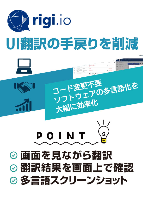 Rigi(リギ)は、WebアプリケーションのUI可視化に特化したクラウドベースのプラットフォームです。 Rigiを用いることで、UI翻訳の課題 誤訳や手戻り等を解決し、ローカリゼーションプロセスを効率化することができます。 Webアプリケーション...
