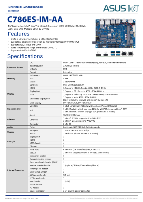 ASUS E395S-IM-AAは3.5インチSBC産業用マザーボードで、豊富なI/O機能、高度な接続性、スペースが限られた場所での設置向けにシャーシサイズを小さくできる小型ボードの中に柔軟なカスタマイズオプションを備えています。最大6つのCOMポート(...