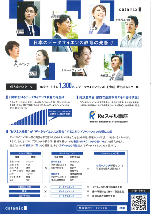 日本のデータサイエンス教育の先駆け 個人向けスクール DXを...