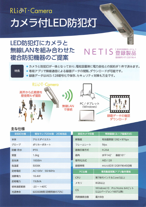 「カメラと防犯灯が一体化」無線LANを組み合わせた複合防犯機...