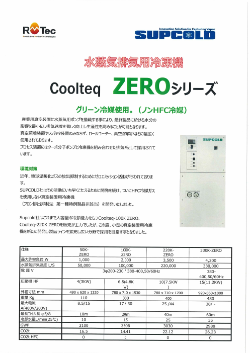 水蒸気排気用冷凍機「Coolteq ZEROシリーズ」