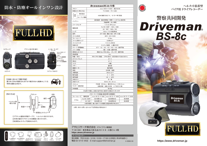 手ブレ補正機能搭載!フル充電で最長約8時間の長時間連続撮影が可能『Driveman BS-9b』は、 防水・防塵オールインワン設計でヘルメット装着型のバイク用ドライブレコーダーです。 高解像度のフルハイビジョンで必要なシーンにあわせて選べる2モー...