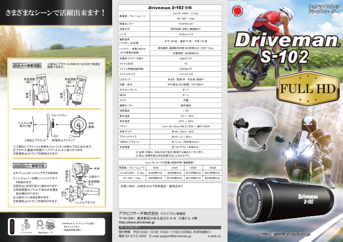【IP56相当/約9時間の連続録画】ヘルメットに装着可!
