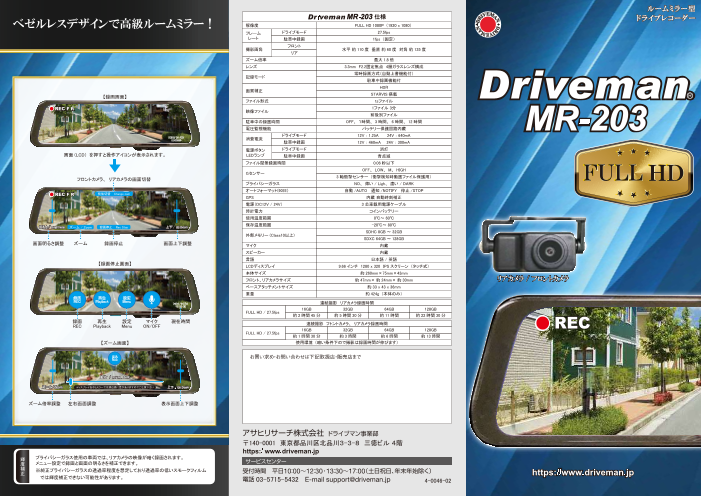 初めてのデジタルミラーでも安心!通常のミラーに近い使用感で使えるズーム機能を搭載 『Driveman MR-203』 通常のミラーからデジタルミラーに交換すると後続車両との距離が 異なって感じるケースがありますが、この違和感を解消するために ...