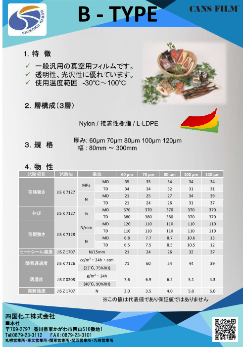 CANS(R)は、単層フィルムで有している特長(透明、物理強度もあり、防湿、防水性に優れ、耐薬品性、耐油性、耐寒性、衛生的)を多層化し各樹脂の機能をあわせる事によりそれぞれの樹脂の長所を表現し・短所を補い、単層フィルムでは表現できない優れた機能をあわせ持...