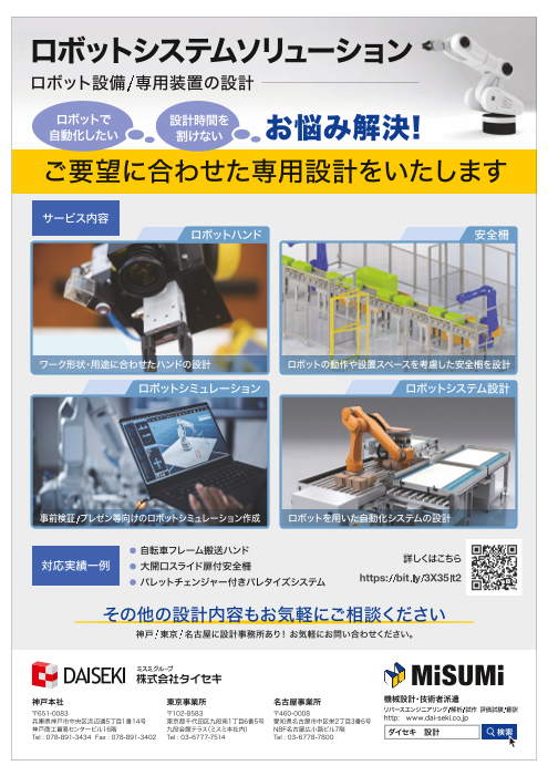 こんなお悩みありませんか? ・安くロボット導入したいが費用感が不透明 ・初めての自動化で何をすればいいのか分からない ・どこに依頼すればいいのか分からない ロボット導入のお悩みを解決します! ・低価格ロボットパッケージで数百万円~の導入も可...