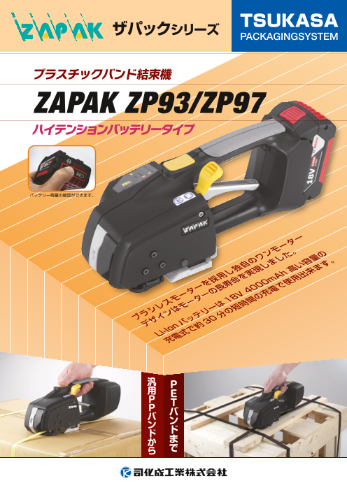 梱包物を強く・硬く結束したい際に最適な結束機を、司化成工業からご紹介します。「水濡れに強く、錆びないプラスチックバンド」に特化した『ZAPAK ZP93/ZP97』です。 【主な特長】 ■ブラシレスモーターを採用した、独自のワンモーターデザインで...
