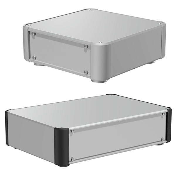 外枠4面がアルミ押出材の側板で構成されたフラットな外観で強度と高級感のあるアルミボックスです。 産業用コントローラー、工作機械用操作盤、オーディオアンプ、電源装置など、様々な用途にご利用頂ける万能ボックスです。 高さ5タイプが追加となり、高さ10サイ...