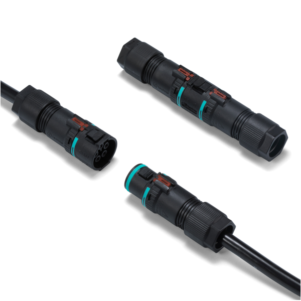 スクリューレスロック式で簡単接続。指で押すだけで簡単に接続・切り離しが可能な防水コネ...