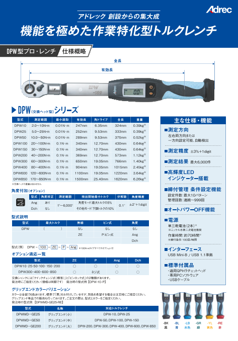 ・豊富な機能 ・リアルタイムデジタル数値表示 ・バーグラフ ・高機能デジタルトルクレンチ ・多彩なインターフェース ・締付作業を確実に支援 ・バーグラフ&LED表示/ブザー音/バイブレーション 3つの感覚でお知らせ ...