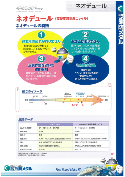 特徴 ①熱変形の恐れがありません! 従来の無電解ニッケルめっきでは、硬度を要求される際には熱処理が必要でした。 複雑な形状品や薄板など、熱処理による変形の恐れがありません。 ②追加工は要りません! 硬質クロムめっきの皮膜は硬さに優れます...