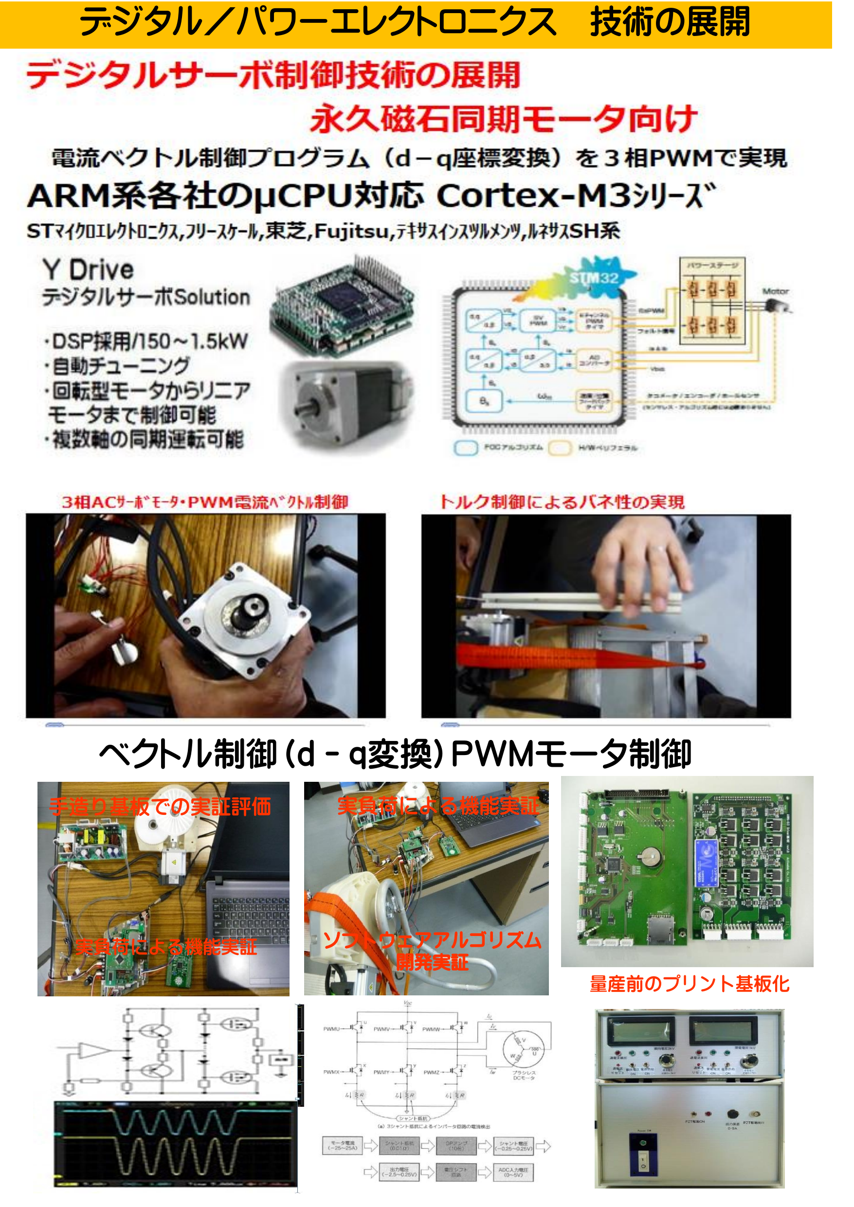 ・超高精度・高解像度・高速画像処理&検査 ・商品開発段階での評価実証基板の受託事例 ・ベクトル制御(d-q変換)プログラムによるモータ制御 ・組込機器向けFPGA/汎用CPU搭載基板 ・パワーエレクトロニクス技術
