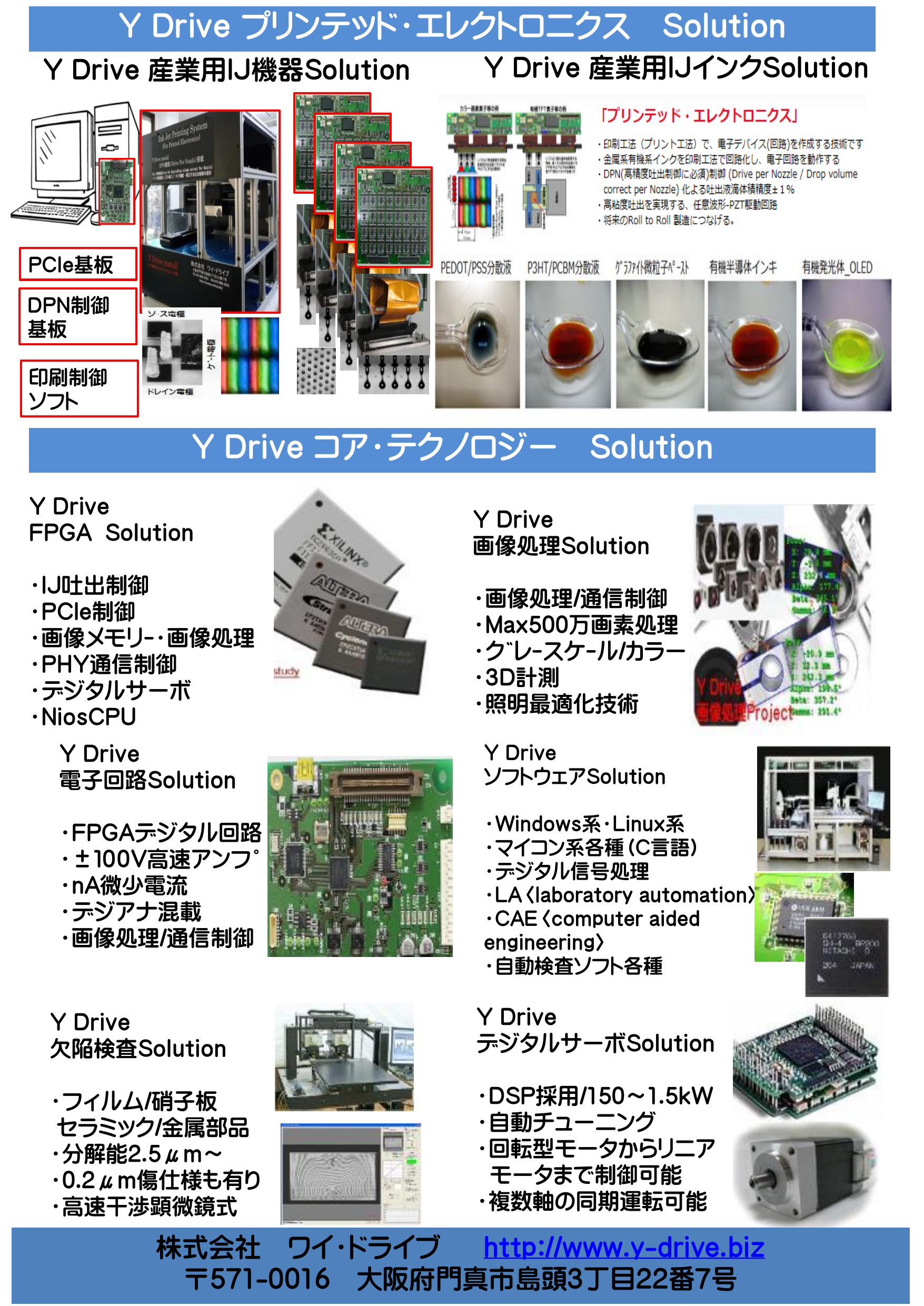 ・Y Drive 産業用IJ機器Solution ・Y Drive 産業用IJインクSolution ・Y Drive FPGA Solution ・Y Drive 電子回路Solution ・Y Drive 欠陥検査Solution ・Y D...