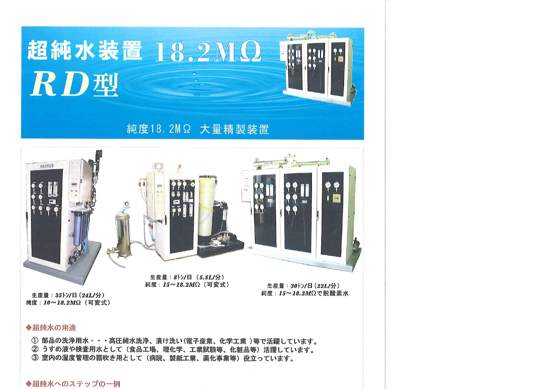 ▼超純水製造装置とは 通常の自然水や水道水、井戸水等にはカルシウム・鉄分他多数の含有物質が多くて お客様の使用用途によっては困ることがあります。 この不純物質だけを水の中から完全に取り除く機械です。 ▼超純水の特徴 ・一般の水は電気を通しま...