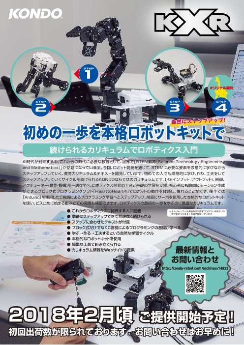 ロボットキット『KXRシリーズ』と『KHR-3HV』の総合カタログです。組換え自由をコンセプトに多彩なオプションをラインナップしたKXRシリーズと、二足歩行ロボットとして高い歩行性能を持つKHR-3HVを本体の特徴からオプションのご紹介まで掲載しています...