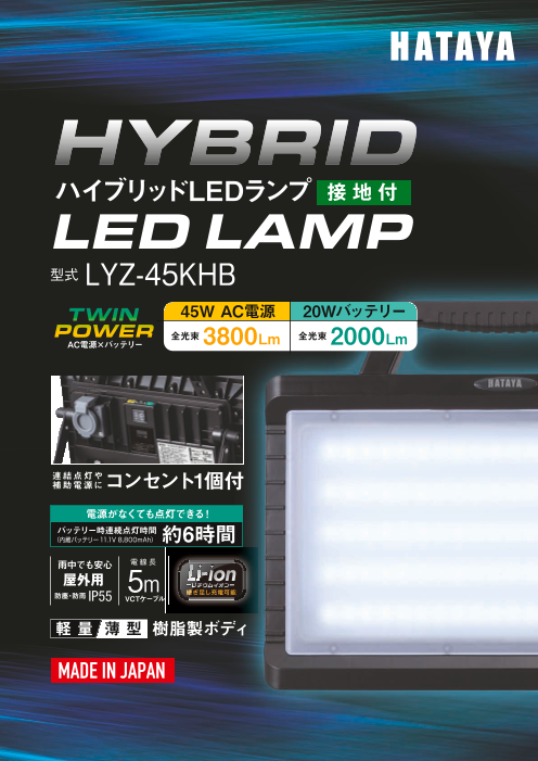 LEDヘッドライト「ハチゼロゼロ」・・・800lmの高照度 段積みリール・・・収納しにくいコードリールをすっきりと。場所を有効活用できます。 HYBRID LED LAMP・・・AC、充電どちらでも使用可能! 除菌照明クリップタイプ・・・点灯するだ...