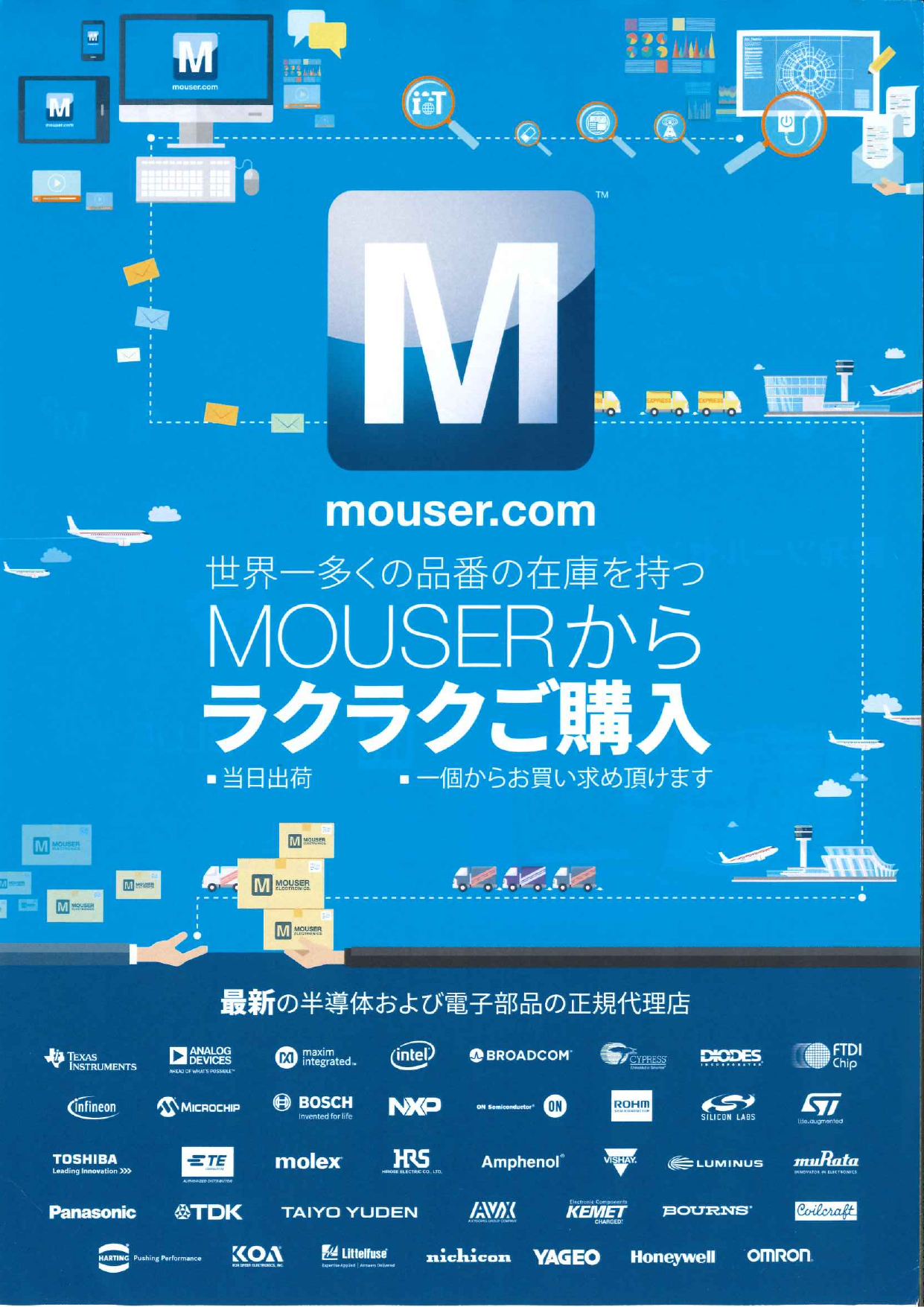 ・当日出荷 ・一個からお買い求め頂けます ・最新の半導体および電子部品の正規代理店 ・MOUSERにてラクラク設計を ・最新製品 アプリケーション&テクノロジー